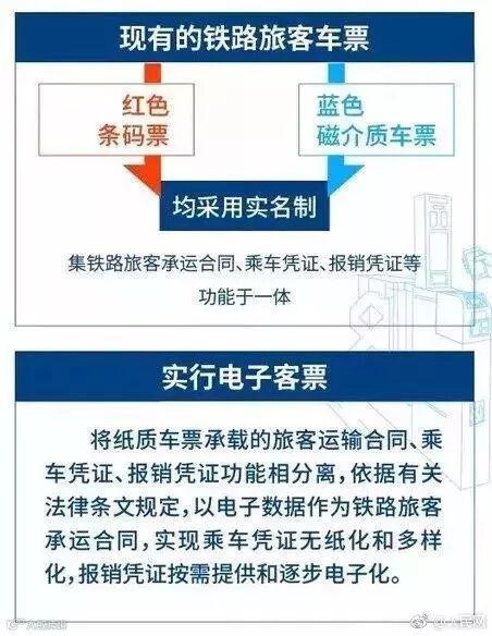 铁路总公司有关部门负责人介绍,现有的铁路旅客车票,为红色条码票和蓝色磁介质车票两种,均采用实名制,集铁路旅客承运合同凭证、乘车凭证、报销凭证等功能于一体,旅客需凭车票乘车。