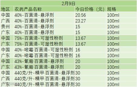 📅 2 月 9 日百菌清系列产品零售价(100ml)