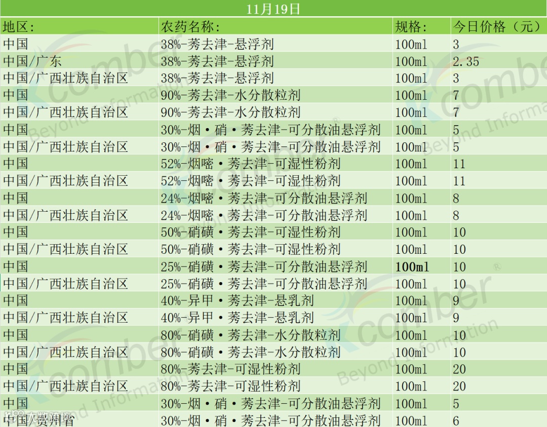 📅 11月19日 · 莠去津系列价格快报