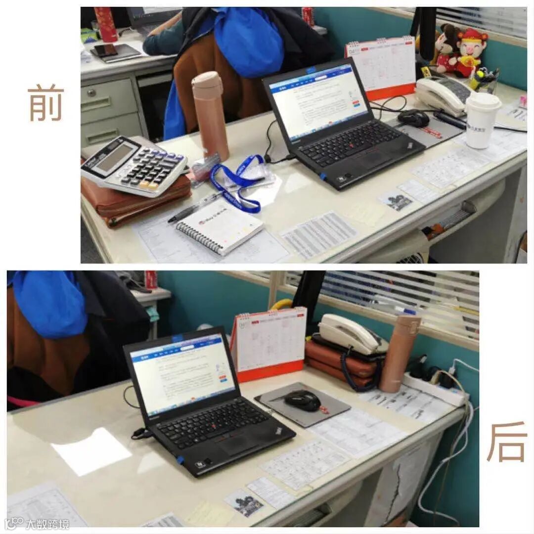 开始6S前,队员们的办公桌面对方各种各样的物品,整个画面是比较杂乱无章的,视觉上影响企业形象,无序的物品摆放同样也影响工作效率。