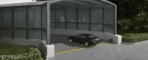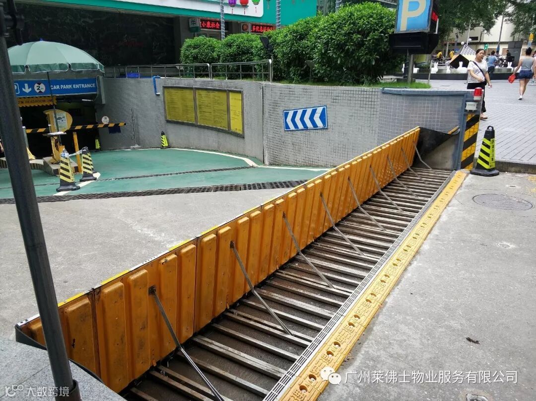 图二:一旦暴雨引起城市内涝、导致水流漫向车场入口,这一防淹神器就会遇水自动升起,阻挡水流进入。