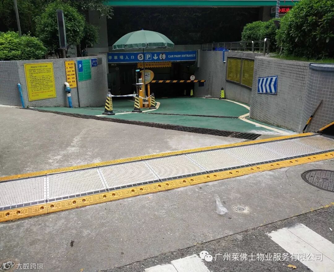 在「宜安广场」的停车场入口处,终于看到了这个传说中的黑科技神器----“水动力智能挡水板”。该“挡水板”采用国家专利的军工技术,平时可作为车辆减速带,暴雨时若发生雨水倒灌,“挡水板”会自动起浮,自动挡水,可靠管用,无需电力。还具有“防车辆误撞警示”、“车辆应急逼停”等功能。安装上了该“挡水板”后,可大大减少车库变“水库”的风险。