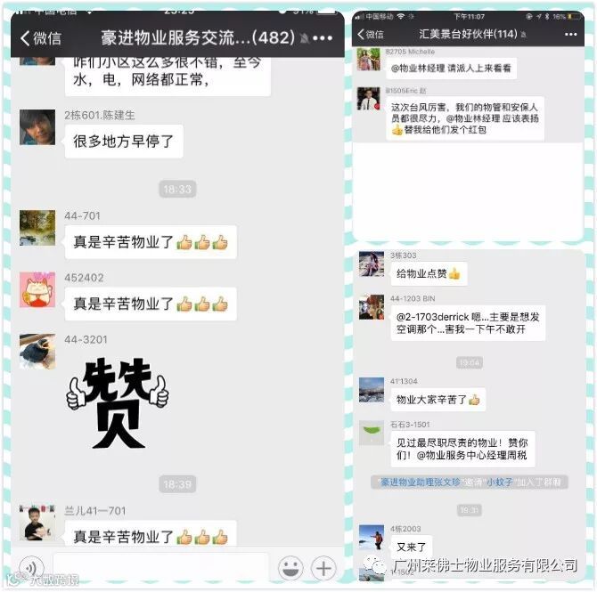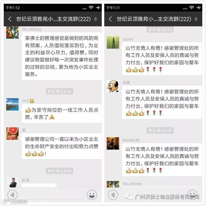 很多业户看到我们的付出后都纷纷点赞