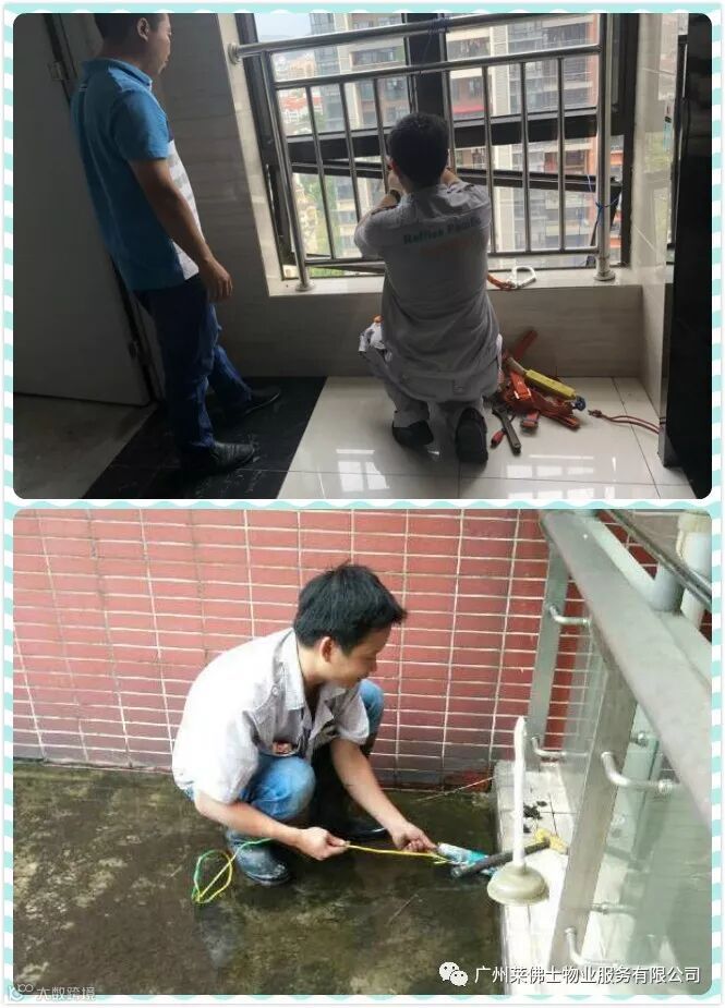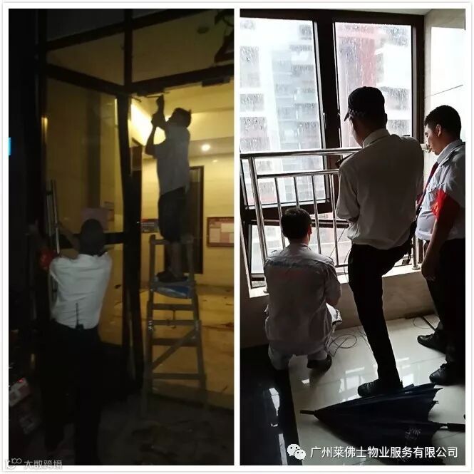 清扫落叶,排干积水,抢修设备