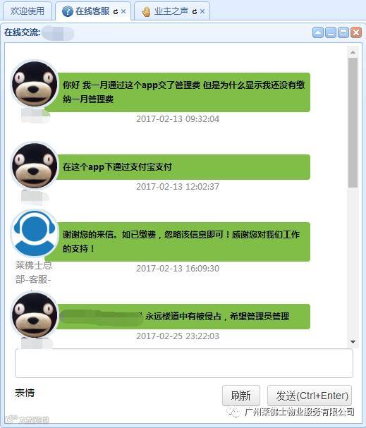 莱佛士物业APP[在线客服]功能,实现客服与业户的在线沟通,及时解决相关问题。业户有相关问题需要物业帮助时,您再也不用专程跑去管理处啦啦啦啦啦。