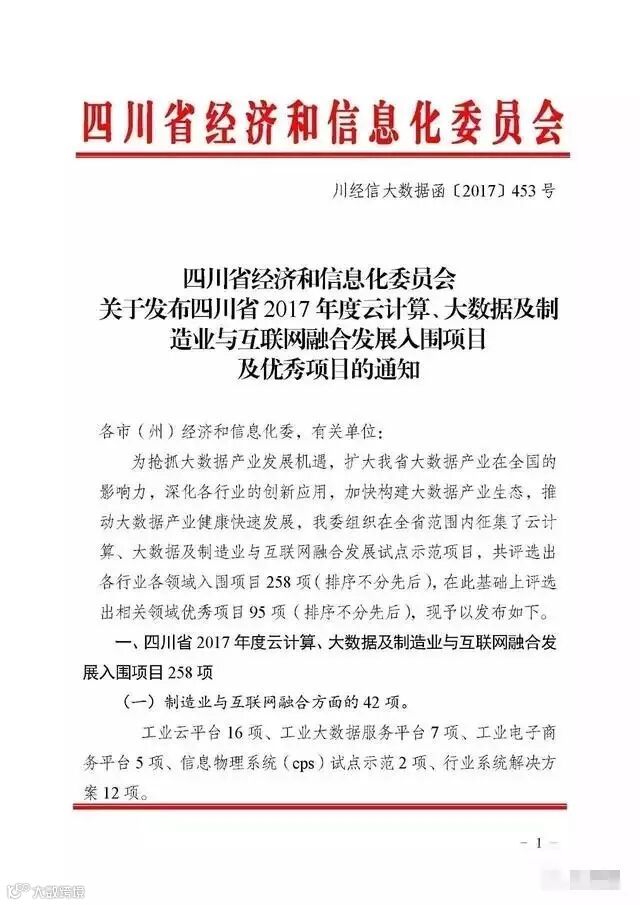 为抢抓大数据发展机遇,扩大我省大数据产业在全国的影响力,深化各行业的创新应用,加快构建大数据产业生态,推动大数据产业健康快速发展,四川省经信委组织在全省范围内征集了云计算、大数据及制造业与互联网融合发展试点示范项目。