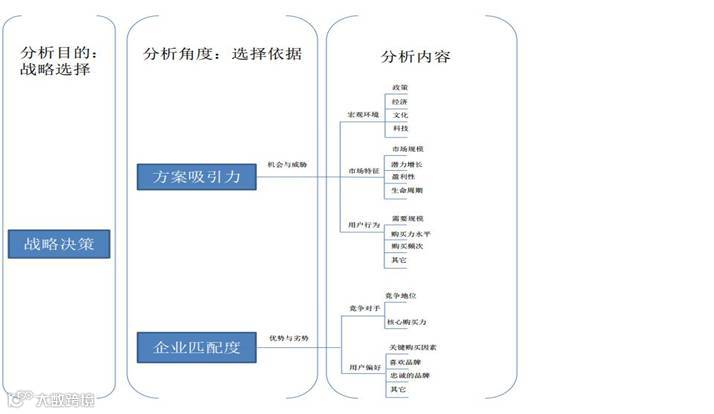 以上两张图表是以一个家电生产企业为例子,介绍了它们做战略分析的全过程。这套分析方法其实十分简单,一般的管理层都可以用于工作汇报或者新品牌建设策划案上。并不完全属于小数据的范畴。