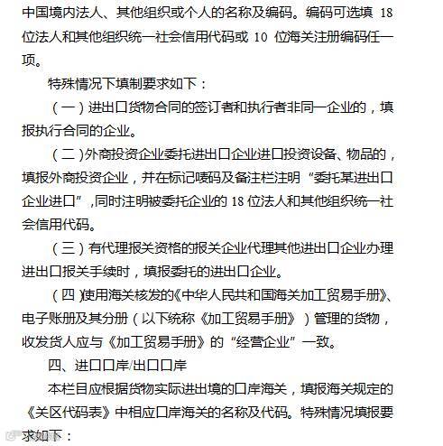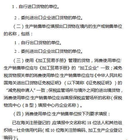 一、根据现行相关规定对“消费使用单位/生产销售单位”、 “运输方式”、“征免性质”、“贸易国(地区)”、“境内目的地/境内货源地”、“许可证号”、“随附单证”、“标志唛码及备注”、“特殊关系确认”、“价格影响确认”、“与货物有关的特许权使用费支付确认”等栏目的填制要求做了相应调整。