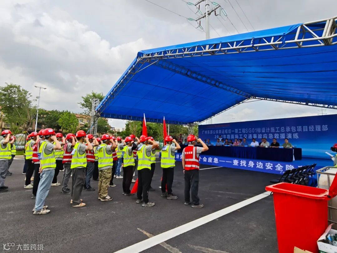 6月20日,全体参演人员于广州东部公铁联运枢纽一期工程施工现场集合。演练前,全体人员作了安全生产誓词宣读,进一步强化安全生产意识,增强了安全生产的使命感和责任心。