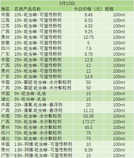 📅 3 月 5 日吡虫啉系列产品零售价(100ml)