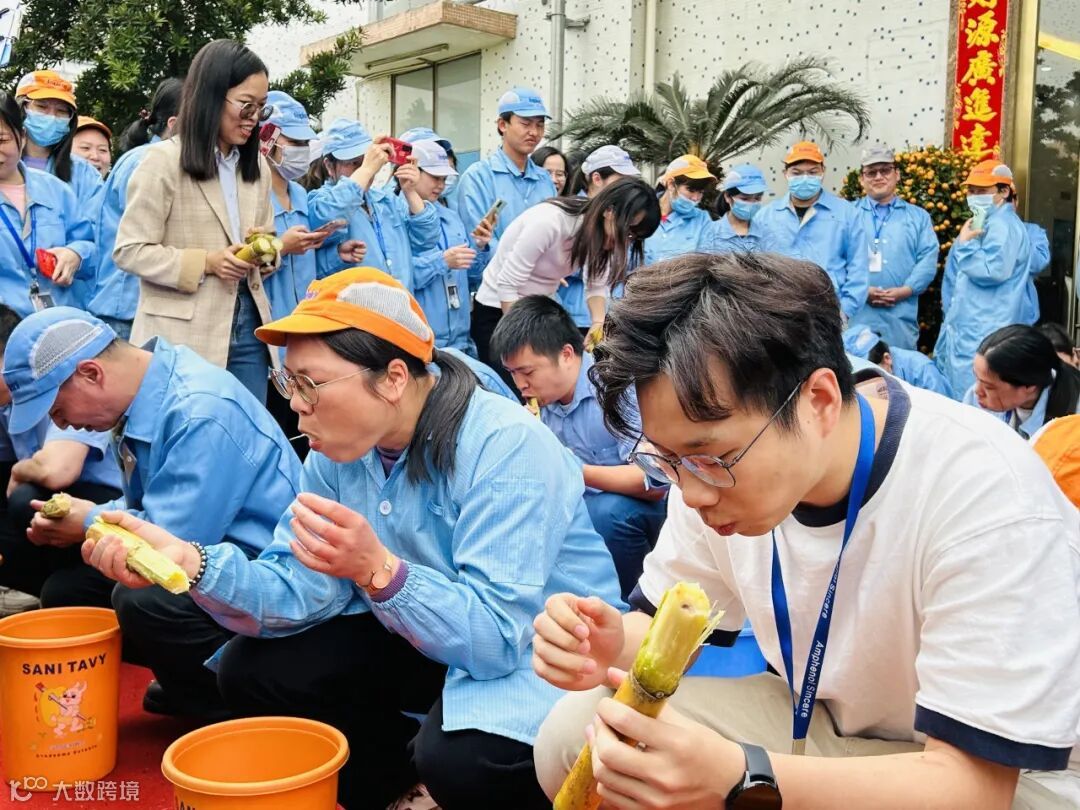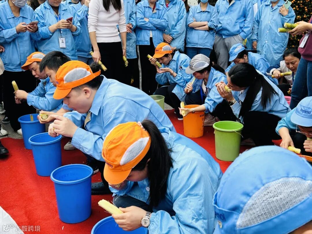 下午15时,开启新年“掂过碌蔗”——吃甘蔗大比拼。现场欢笑声、喝彩声此起彼伏,寓意新年掂过碌蔗,顺风顺水!