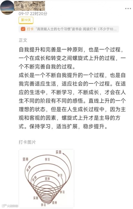 9月23日,小伙伴们循序渐进的阅读完成后,闪耀队再次举行读书分享线下会议暨《高效能人士的七个习惯》全面总结,每个人积极发言表达了读完整本书的收获及过程中对工作,生活实实在在的影响,从中体会到的读这本书的意义。同时,大家的打卡记录被清楚的记录,读书笔记也被有序整理并保存为EXCEL文件,可以温故知新。