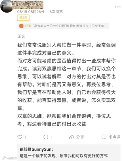 看到小伙伴们分享的读书笔记,再总结一下自己情况,也会找到知音和新的视角。