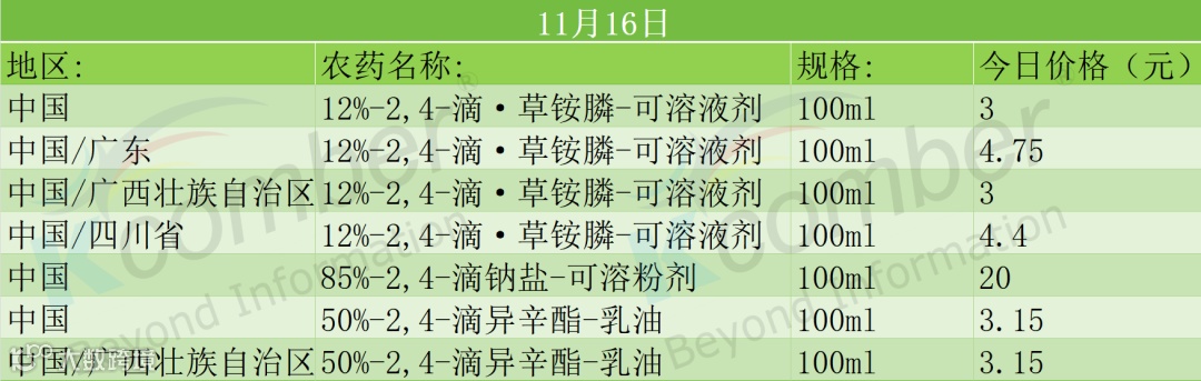 📅 11月16日2,4-滴及复配制剂主要市场报价(100ml)