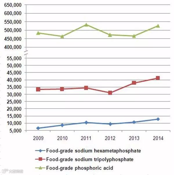 近年来,中国食品级磷酸与磷酸盐的出口形势良好,2009年到2014年,中国食品级三聚磷酸钠的出口量增长23.93%,食品级磷酸的出口量增长8.60%,食品级六偏磷酸纳的出口量增长高达95.03%。不过食品级磷酸盐出口的产品基本以单体食品级磷酸盐为主,而在复配型食品级磷酸盐这一块,国内成熟的配方还不多,随着复配磷酸盐的发展,还是有增长的空间。目前兴发集团也在研究着复配食品级磷酸盐,近年来,他们对钾盐的研发投入还是比较大。