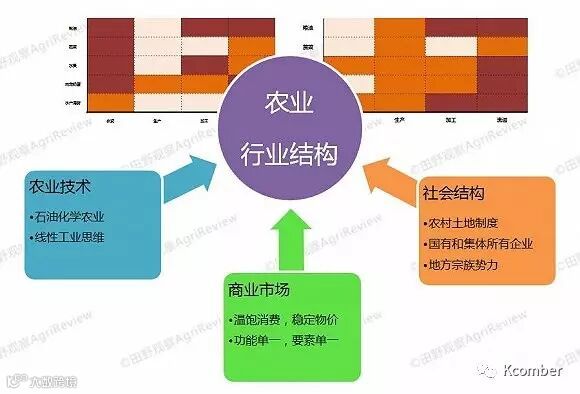 农业技术,商业市场和社会结构是构成目前农业行业结构的三个主要因素(如下图所示)。