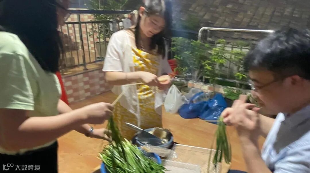“烧烤店老板娘”亲自指导穿韭菜↑↑