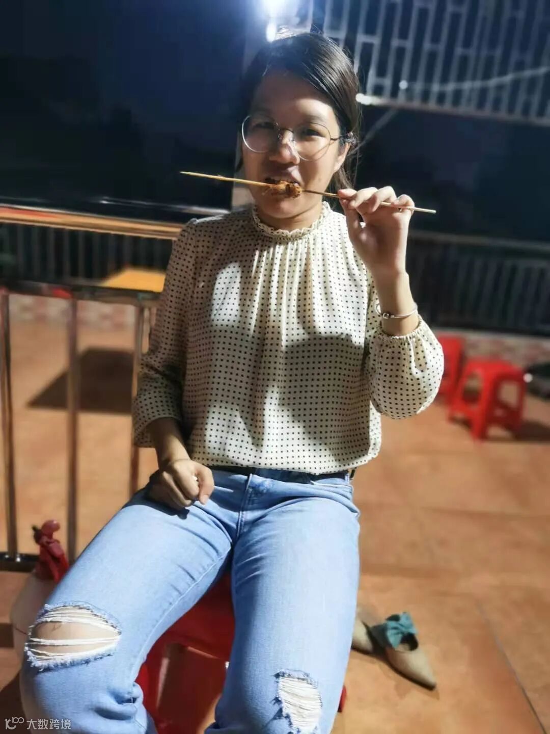 吃着烧烤,喝着啤酒