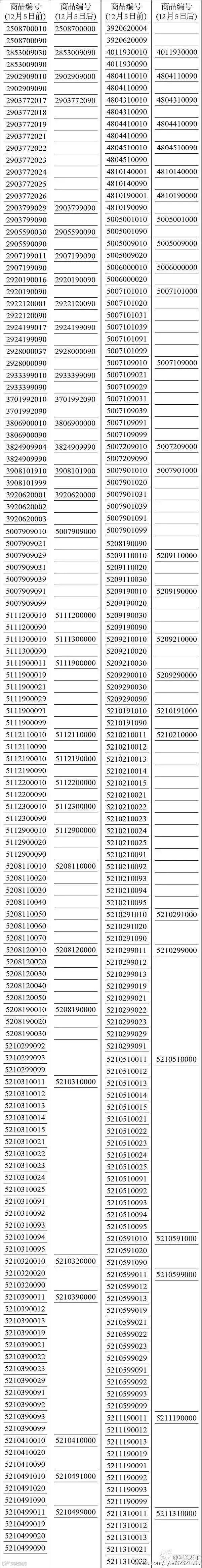 为降低申报难度,减少归类申报差错,中国海关对部分适用相同进出口政策的商品进行了海关编码优化简化,并于2016年12月5日起执行。