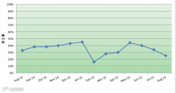 据CCM统计,2015年8月(截至8月20日)中国糠醛企业的开工率仅为25%,较7月开工率34%进一步下滑。