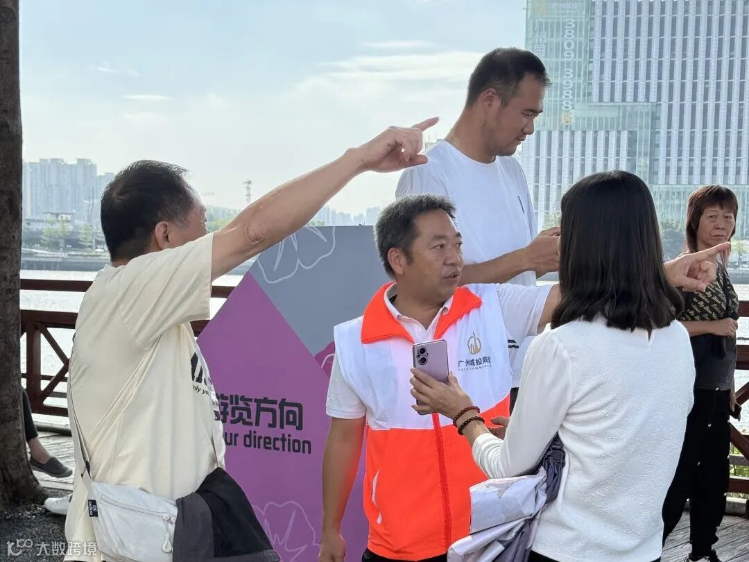 除了提供问询服务,志愿者们还肩负起了引导游客合理分流、确保交通畅通、配合相关部门处理突发情况的任务,与安保人员及工作人员紧密配合,确保每位游客都能在安全、井然有序的环境中沉浸式享受“魅力新广州”。他们也会化身文明引导员,耐心劝阻游客吸烟、乱扔垃圾等不文明行为,并主动解答游客关于全运会、景点历史、文化内涵的各类问题,将文明引导与文化传播有机结合,让“5A标准”内化于一举一动。队员们纷纷表示,“服务无止境,我们要让每一位游客都感受到广州的温度,感受到广州地标性景区人文服务的脉脉温情”。