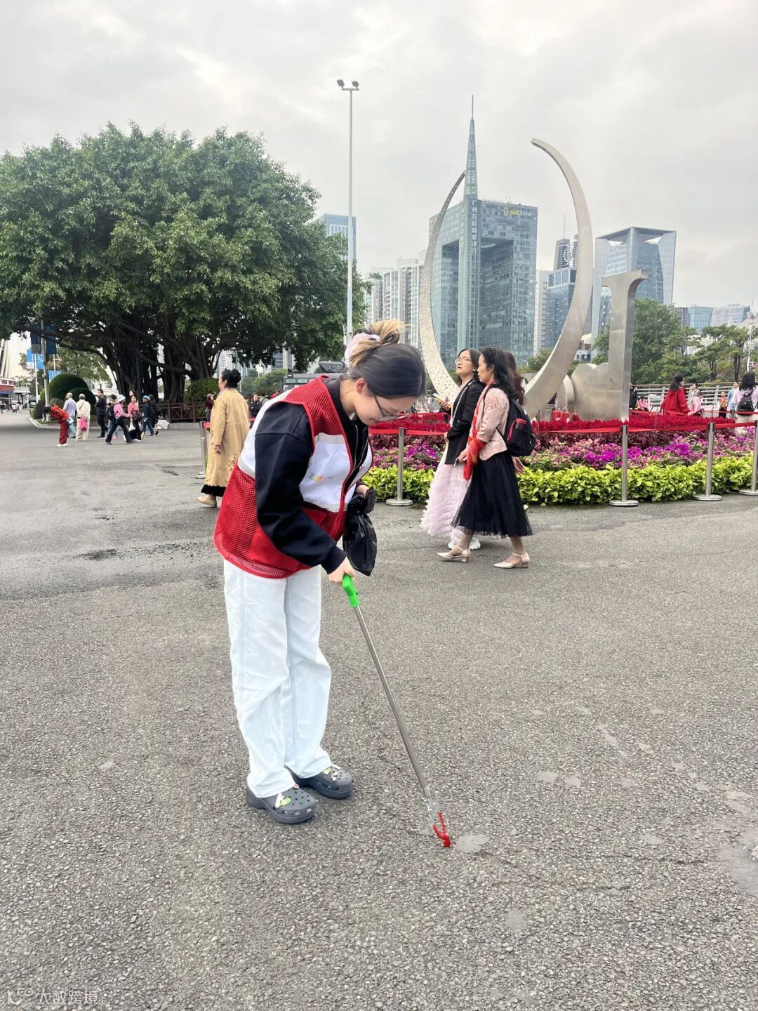 无论是全运会广迎四海宾朋,还是创建5A景区,亦或是正在如火如荼开展的广州国际灯光节,对环境卫生与服务品质都是极致的考验。志愿服务队深知任务艰巨、责任重大,他们化身为“环境卫士”和“保洁工匠”,主动承担起最艰苦的“死角清零”任务。他们的服务,细致到了广州塔广场、花城广场和海心沙等景区的每一个“神经末梢”,下足“绣花功夫”。队员们将大量的精力投入到了不显眼、难清理的“边角地带”,他们手持垃圾夹和环保袋,深入绿化带深处,蹲下身检查灌木丛底部,仔细清理步道砖缝……任何一个烟头、一片纸屑、一个包装袋都逃不过他们的“火眼金睛”。