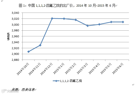 而2014年HFC-134a“双反”调查在10月结束之后的市场行情走势,也一定程度上证实了上述做法的正确性。具体来说,HFC-134a 出口市场自2014年11月起明显好转,需求增强促使国内HFC-134a价格明显回升;同时进入2015年之后,不少企业有意实施低开工率生产措施,保持供应与需求波动(欧盟配额限制带来减量,第二季度国内产销旺季带来增量)之间的相对平衡,也使得HFC-134a价格维持稳定。