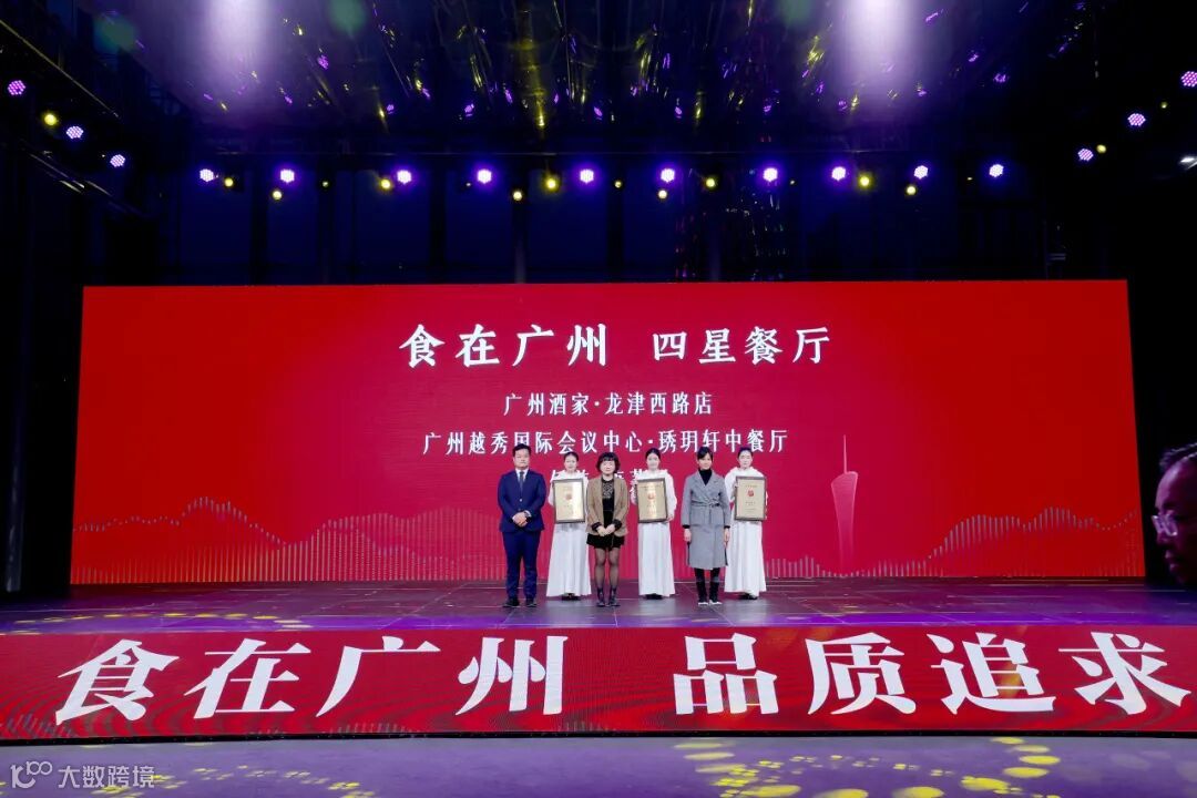 代表琇玥轩领取“食在广州”四星餐厅挂匾与证书