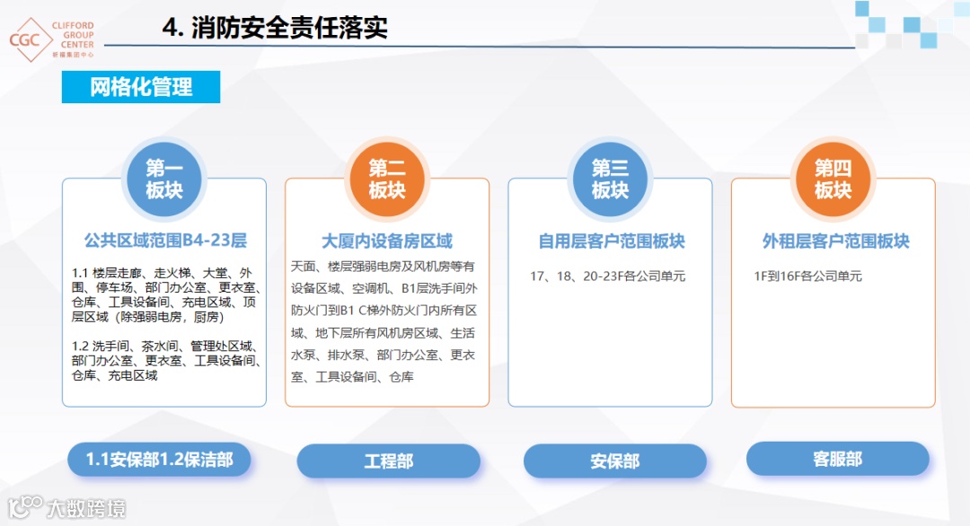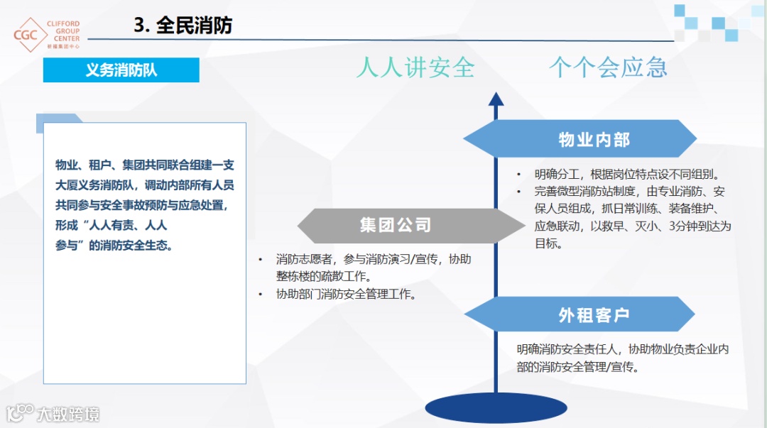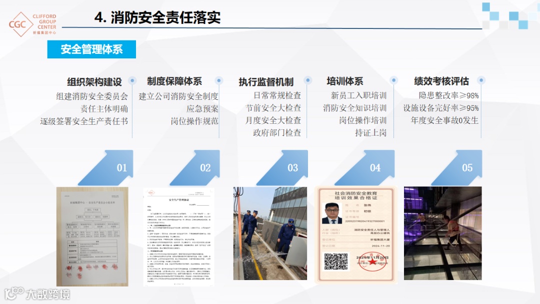 会上,祈福集团中心消防管理人张伟先生介绍项目概况后,以“强责任 抓落实 促安全”为主题,从四大维度分享经验:
