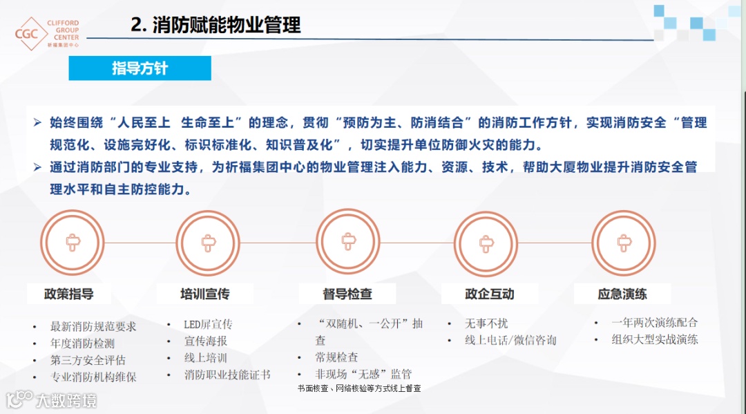 此次会议既是肯定,更是鞭策。祈福集团中心物业将持续提升消防安全管理标准化、消防部门的"联勤联防"机制、持续落实消防主体责任 。