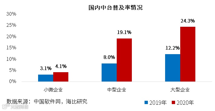 从微观角度,企业运用数字化工具的成本正在逐步降低,我们看到SaaS化的轻应用模式在中国的普及率已从2017年的54.7%上升至2019年的66.1%,企业数字化转型速度加快。