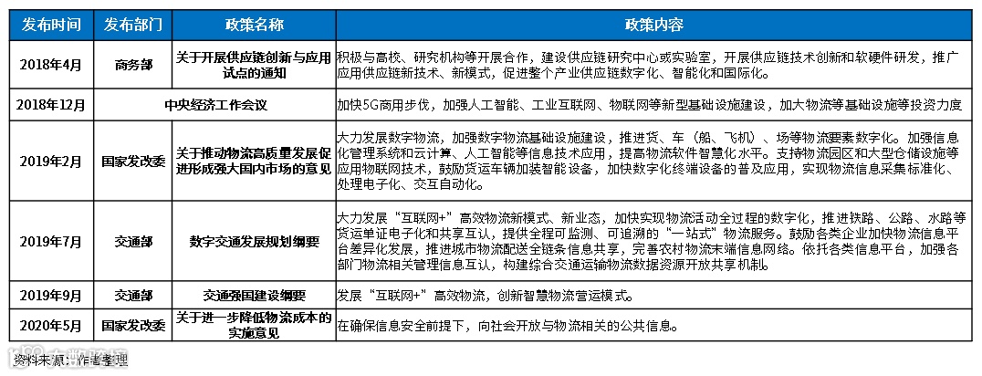 未来五年内,伴随新基建等数字经济方面的国家政策不断发布落地,企业物流有望受惠于政策鼓励的新型基础设施持续投入,加速进入数字化快车道,并能够持续降低数字化建设和运营的成本。