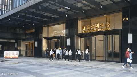 演练当天15:40各小组成员已到达各自岗位待命,16:00集团中心消防疏散演练正式开始。本次演练模拟了大厦17层发生火灾时疏散、救援的全过程。