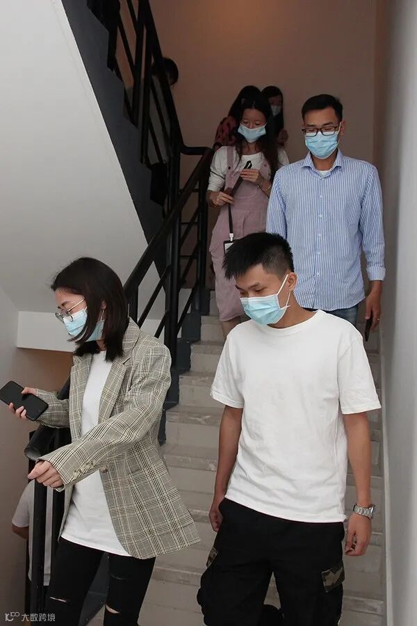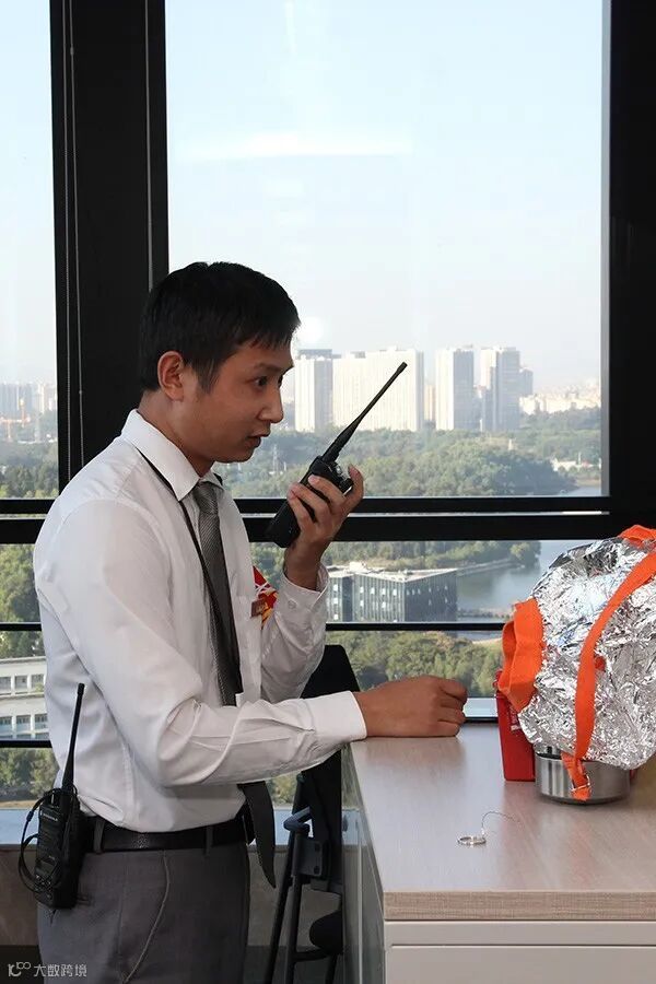 听到警铃和广播响起后,参加演练人员保持冷静,马上关好办公室门,听从疏散员指引,迅速从就近的走火通道撤离到大厦首层。