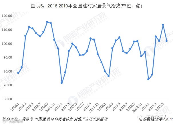 由商务部与中国建筑材料流通协会共同发布的“全国建材家居景气指数BHI”分析可见,2019年6月份全国建材家居景气指数(BHI)为101.54,环比下降11.71点,同比上涨17.49点。