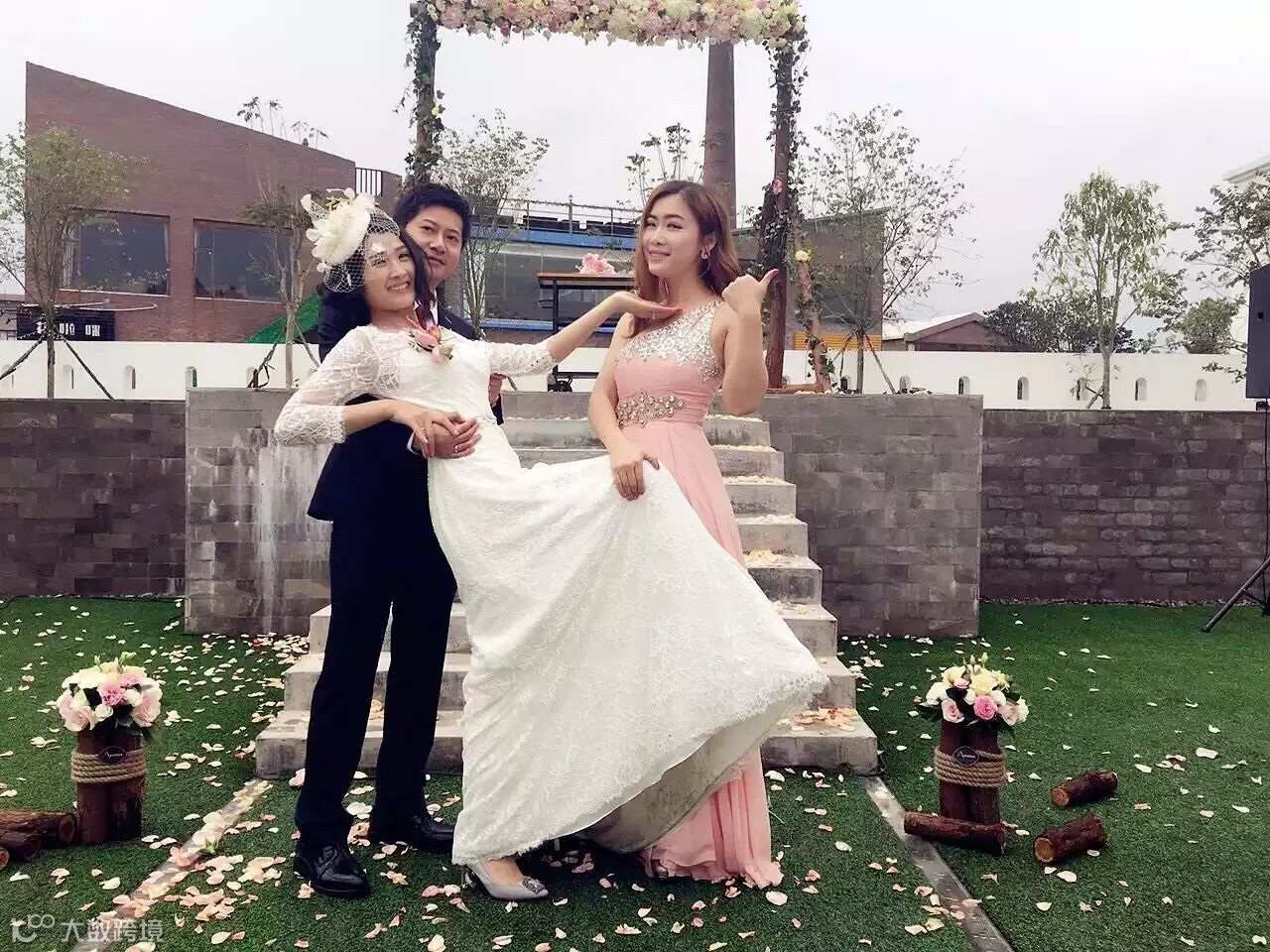 一对新人与礼御堂驻场的首席星级主持晓瑜姐姐一起合照留念...