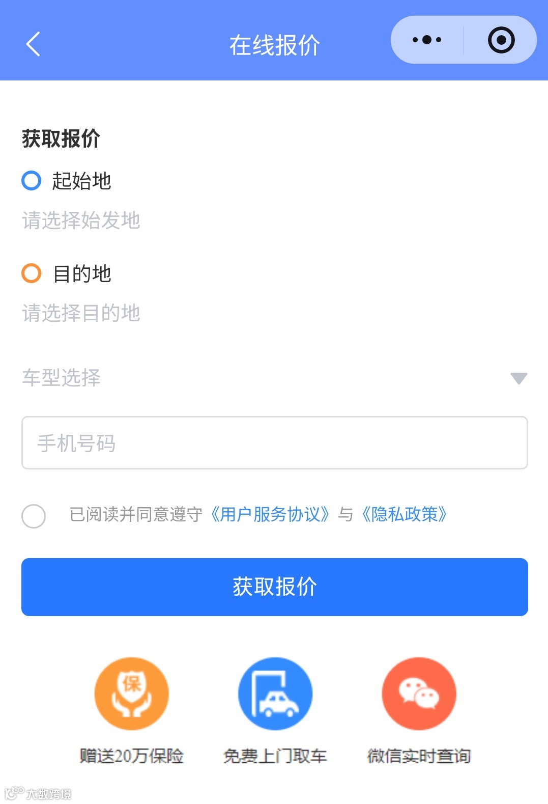 报汽车类型、起止地、时间,安运通专业团队快速给出初步报价。