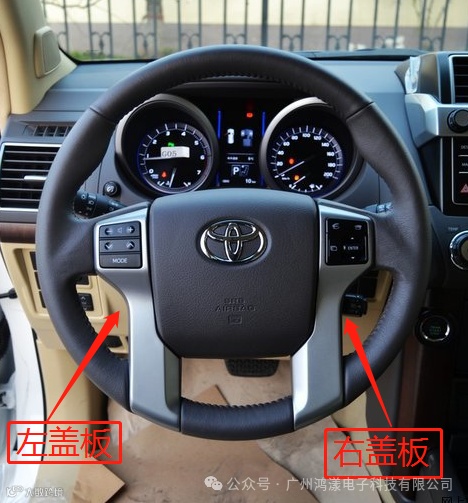 首先先把方向盘左右两边的盖板撬开