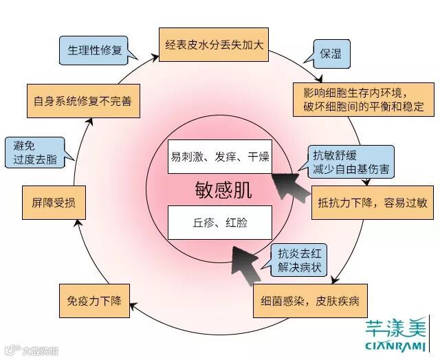 敏感肌肤因为很容易受到外界的感染,发生肌肤疾病,所以我们在产品中加入抗炎,解毒的中药材,例如:紫草,西藏雪莲花都有解毒抗炎的作用