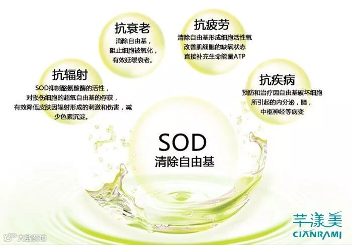 而清除自由基有SOD酶,能有效果的改善抵抗力,改善敏感肌肤,使细胞恢复活力,肌肤年轻态。