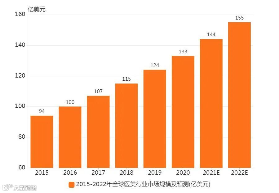 目前中国医美市场,虽然已成为全球第三大市场。但和成熟市场相比,中国的医美人口渗透率不到2%,市场潜力巨大,预期在未来的5年里还会以22.7%的年复合增长率递增。