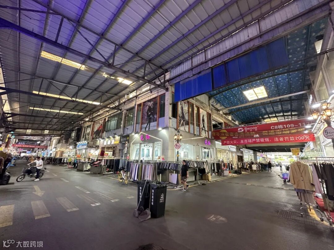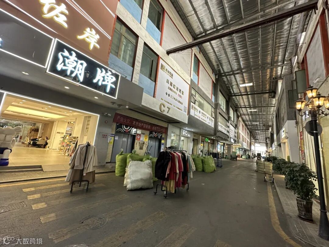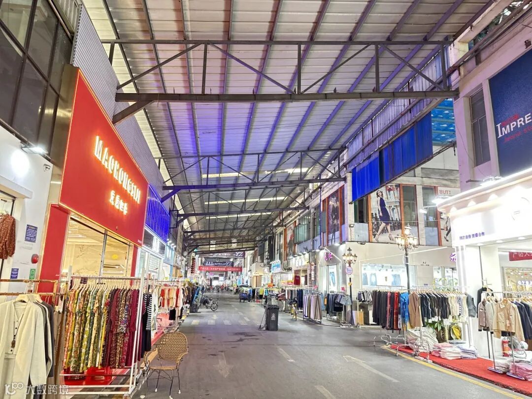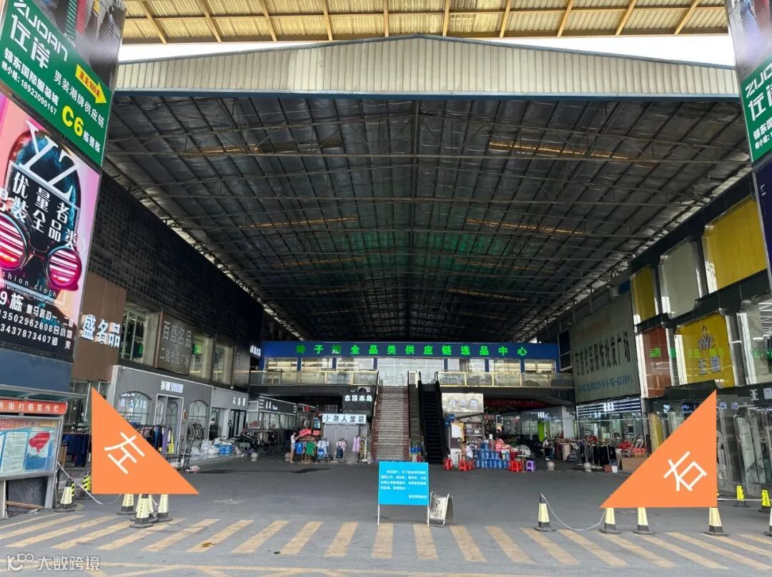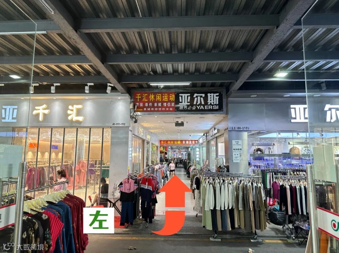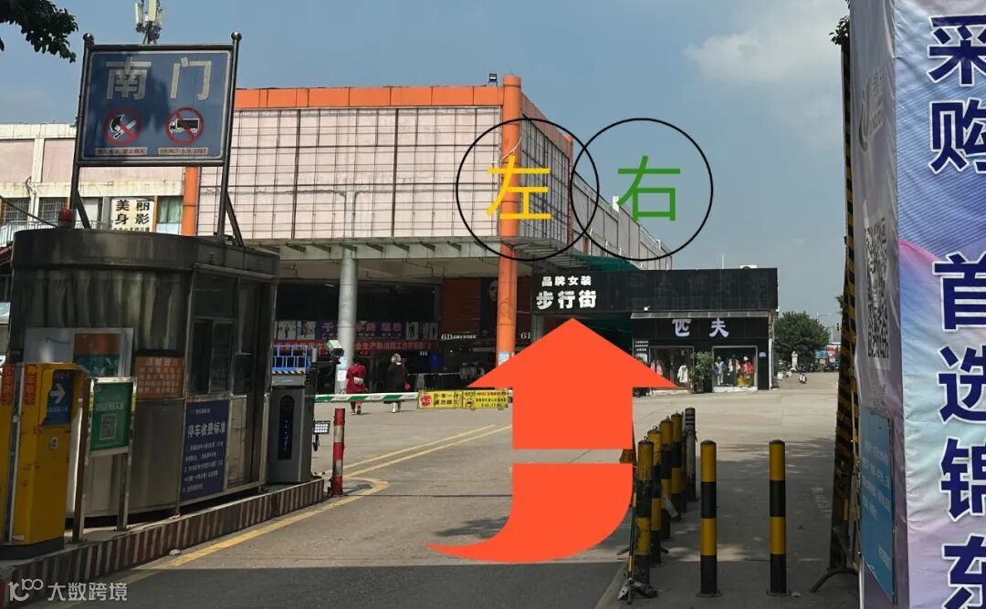 南门入口,左边直行为A1栋女装店铺较多,右边直行为东门直达采批中心区域。