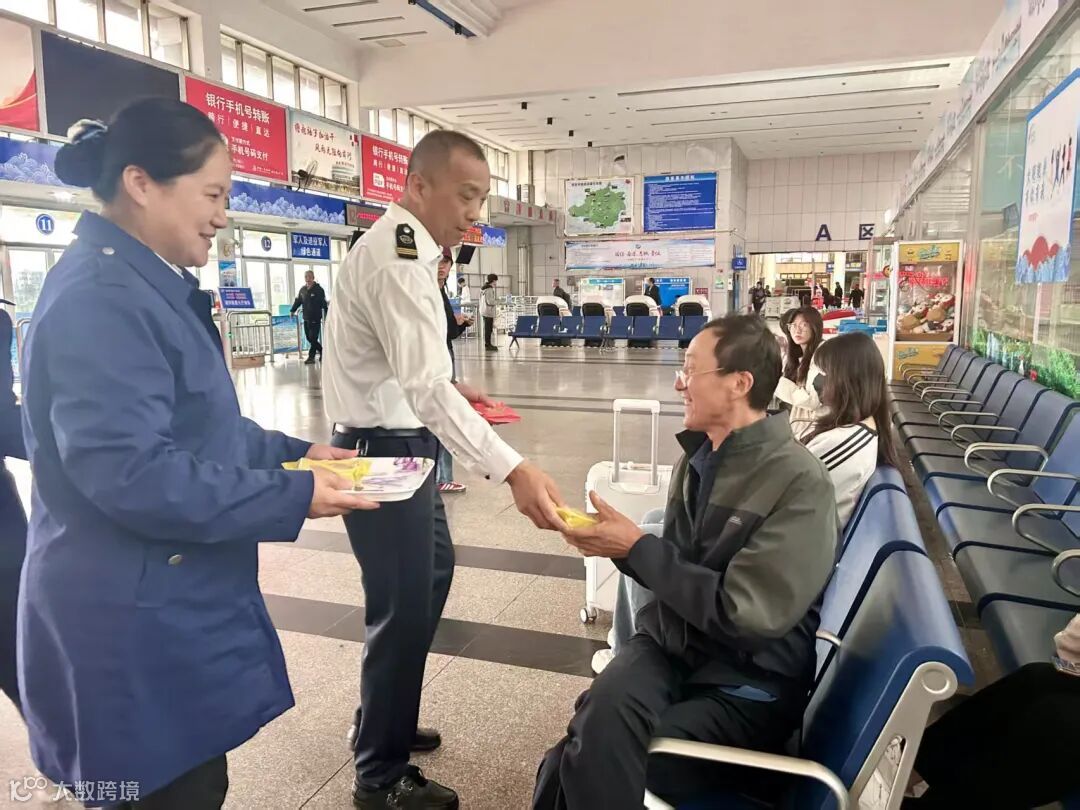 随后,张军站长与工作人员一同前往候车大厅,将月饼送到等候发车的旅客手中。无论是返乡探亲的游子、外出求学的学子,还是商务出行的旅客,都收到了这份意外的节日惊喜。“没想到在车站能收到月饼,一下子就感受到了家的味道!”一位旅客笑着说道。小小的月饼不仅消解了旅途的疲惫,更让人们对团圆的期盼愈发热切。