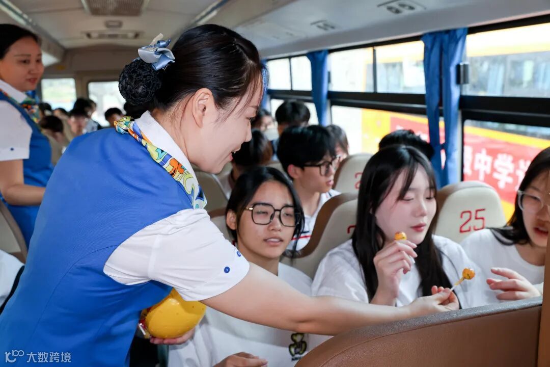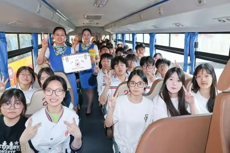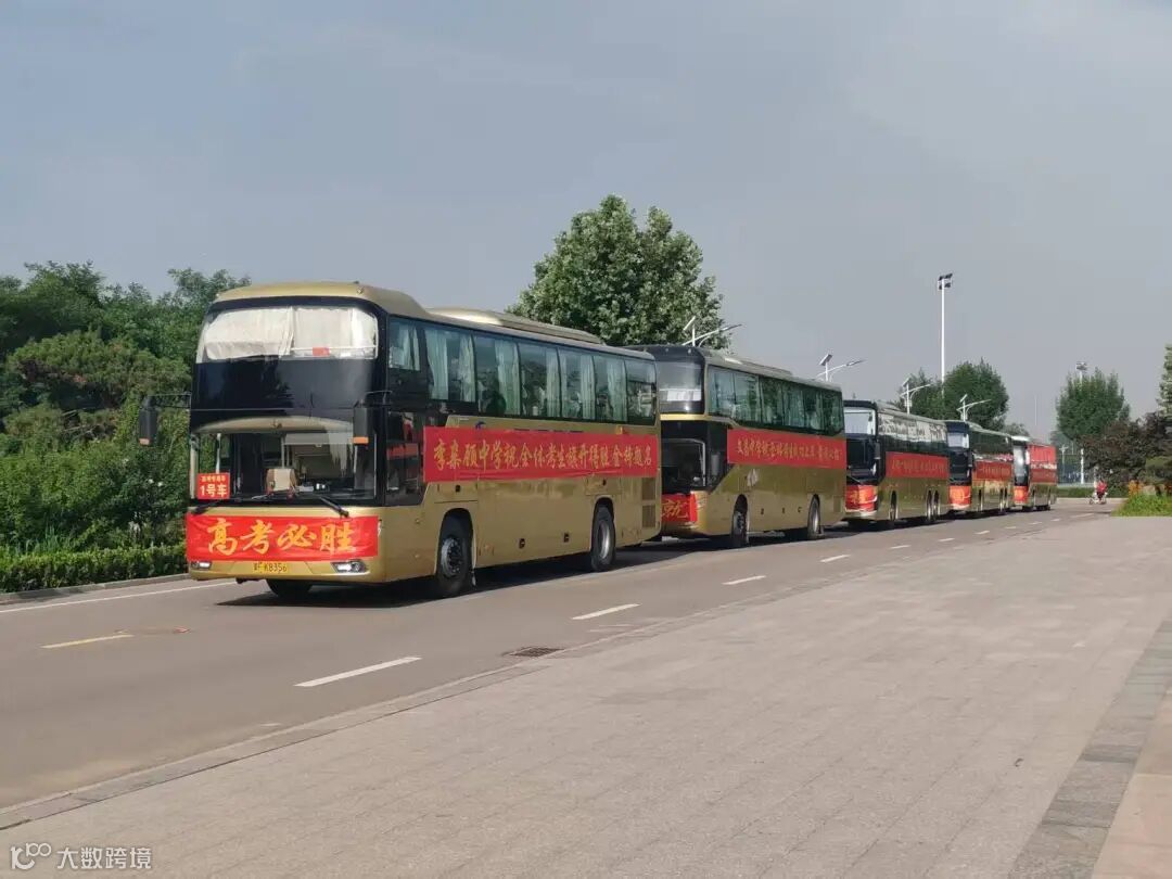 6月7日高考首日,179部金色大巴挂满“金榜题名”“逢考必过”“未来可期”等祝福标语从各点位早早发车,助力万千学子逐梦考场,书写青春华章。服务期间,保运集团将“护航青春·梦启新篇·温馨助考”理念融入服务的每个环节。车厢内配备“助考百宝箱”,备有应急文具、矿泉水、防暑药品等,应对突发状况。车身张贴励志标语,部分车辆摆放向日葵扇子寓意“一举夺魁”,随车人员贴心提醒考生检查证件,适时安抚紧张情绪。开通爱心预约通道。此外,总站在候车厅、检票处设立“学子服务驿站”,免费提供充电、饮品、旅游咨询、行李寄存与托运等一站式服务,以贴心细节为考生缓解后顾之忧,打造安心、便捷的出行体验。