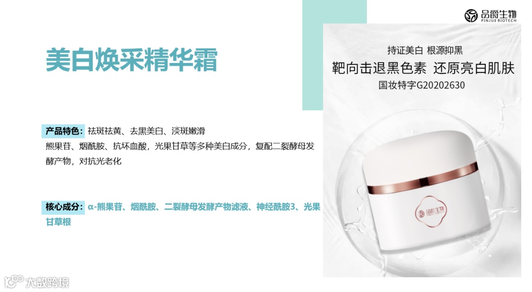 采用现代高精尖端技术与安全高效美白祛斑成分,直击黑色素根源,抑制黑色素,从而达到美白祛斑效果。