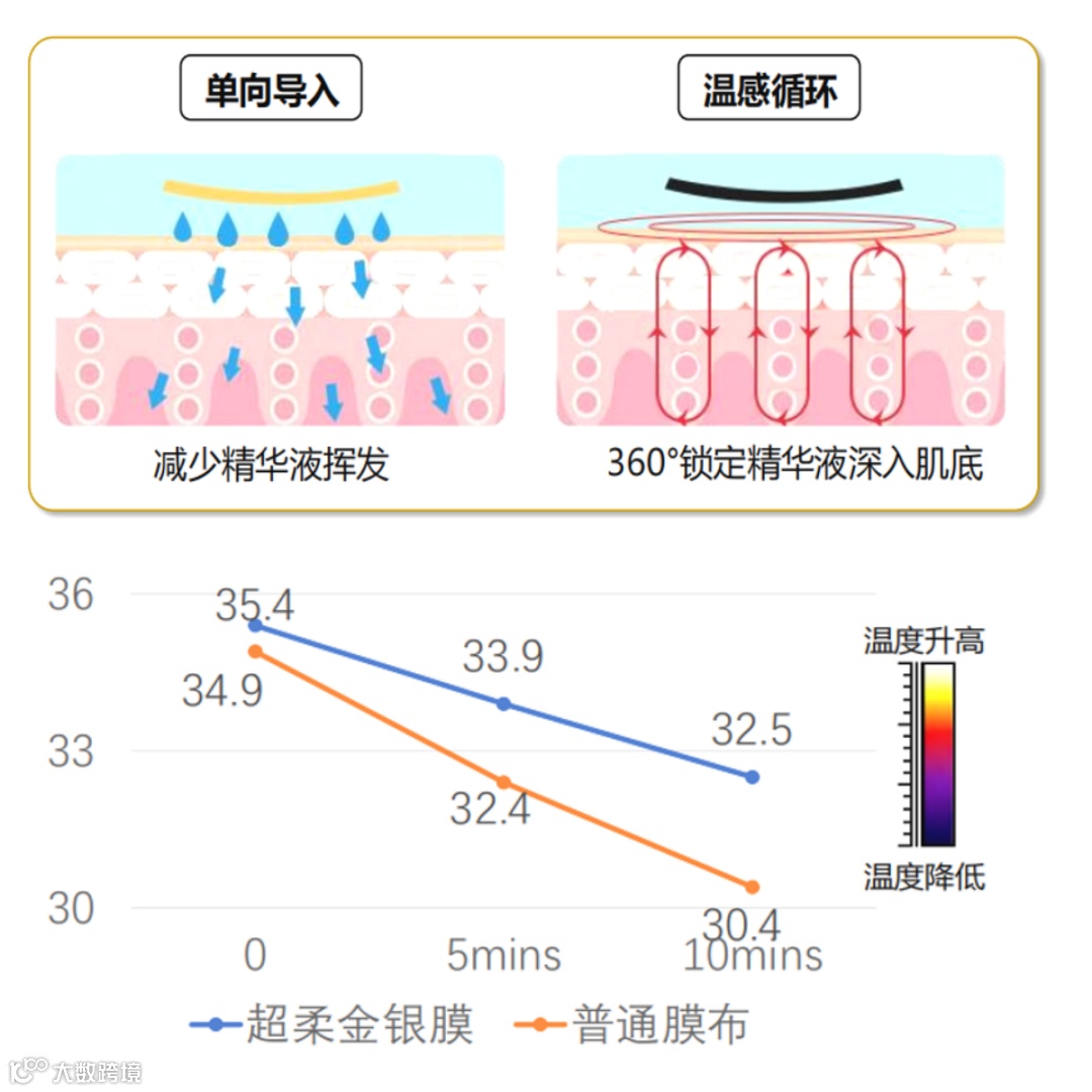 超柔金银膜膜布单向导入精华,360°恒温循环,使肌肤处于恒温舒适状态