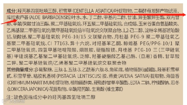 不止高含量玻色因添加、紧跟玻色因的成分连续为三大养肤精粹:积雪草、二裂酵母发酵产物滤液、芦荟叶水!不计成本,高添加高效能,拒绝“概念添加”!
