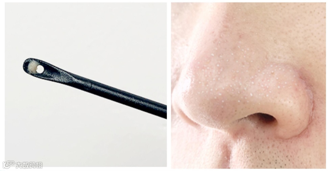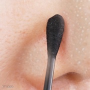 然后拿出清洁棉棒轻压刮出黑头,可以眼见刮出很多黑头。