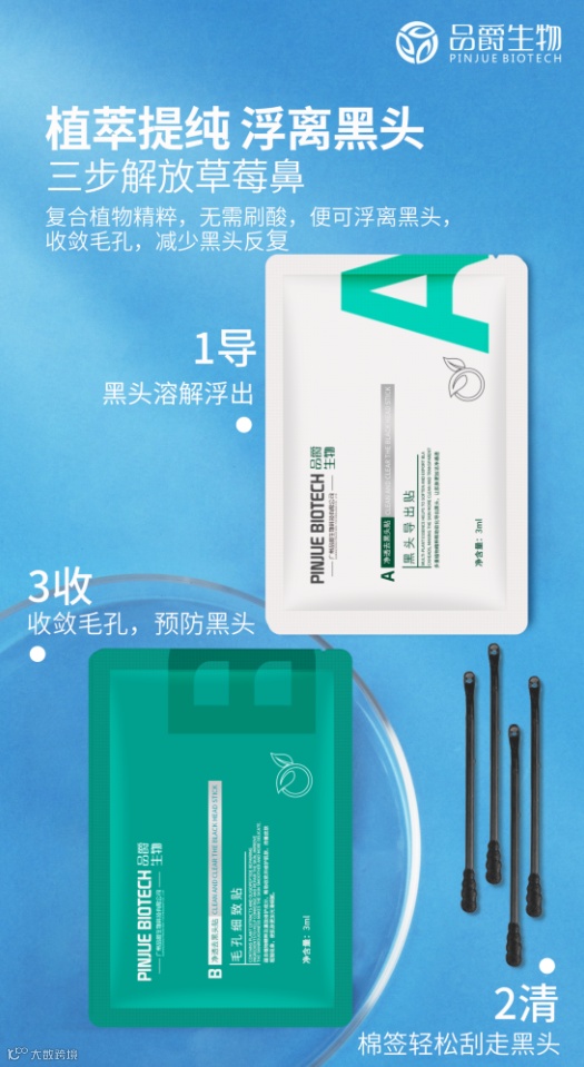 这款净透去黑头鼻贴套装最大的特点就是:温和复配多种植物精粹,无需刷酸,不刺激肌肤,温和浮离黑头。