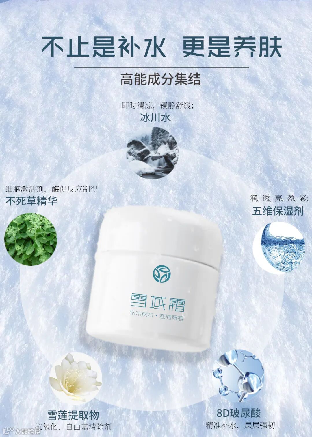 ——激活细胞再生(如生成I型胶原蛋白前体),高效锁水力,长效8小时保湿,增加肌肤弹性和光滑度,减轻皮肤发红,对抗红疹